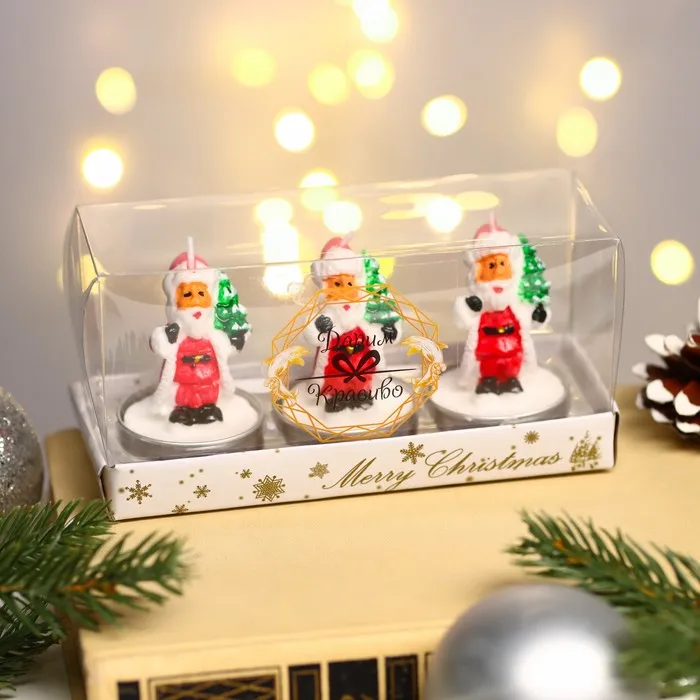 Набор свечи новогодние "Дед мороз с ёлкой", 4×6 см, 3 шт — Характеристики