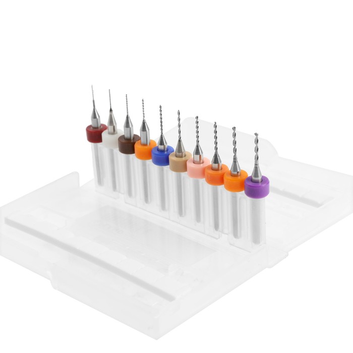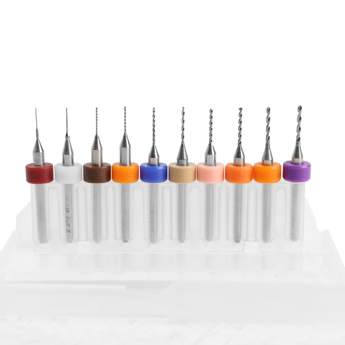 Для серийного производства и прототипирования: Набор охватывает основные диаметры для монтажа электронных компонентов. Карбид вольфрама сохраняет остроту кромки при работе с абразивными материалами оснований плат. Комплектация из десяти штук оптимальна для оснащения рабочего места оператора ЧПУ – вы получаете основной набор размеров в одной упаковке. Свёрла используют в условиях мелкосерийного производства и в лабораториях прототипирования электронных устройств.