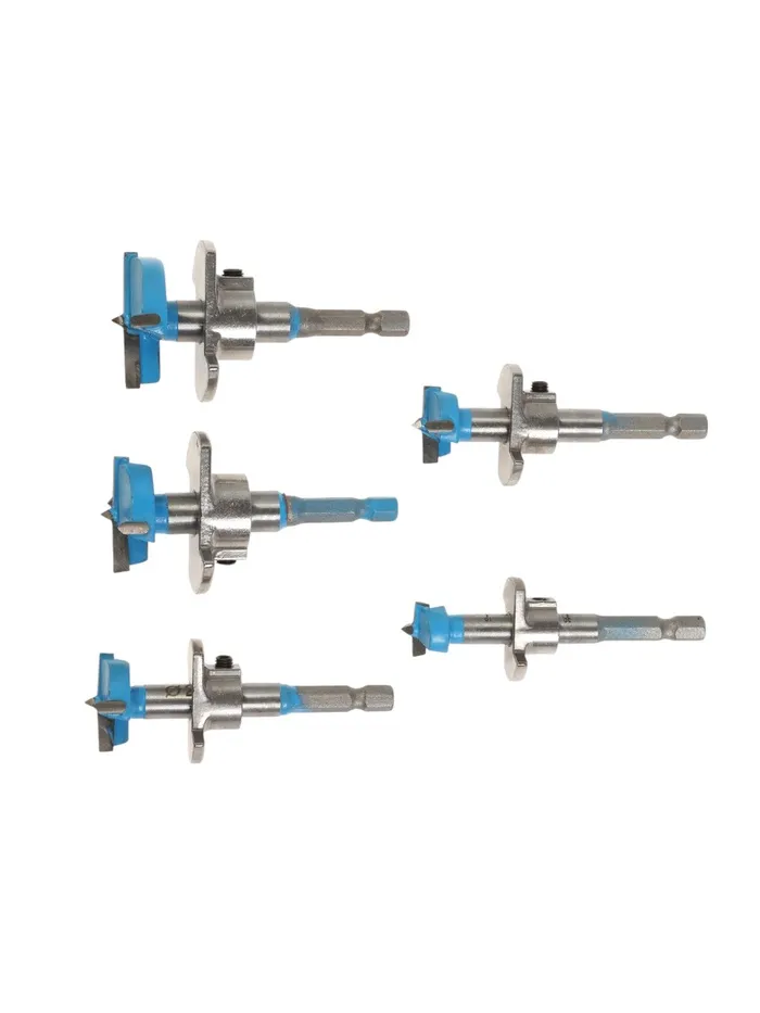 В наборе 5 сверл диаметром: 15 мм; 20 мм; 25 мм; 30 мм; 35 мм.