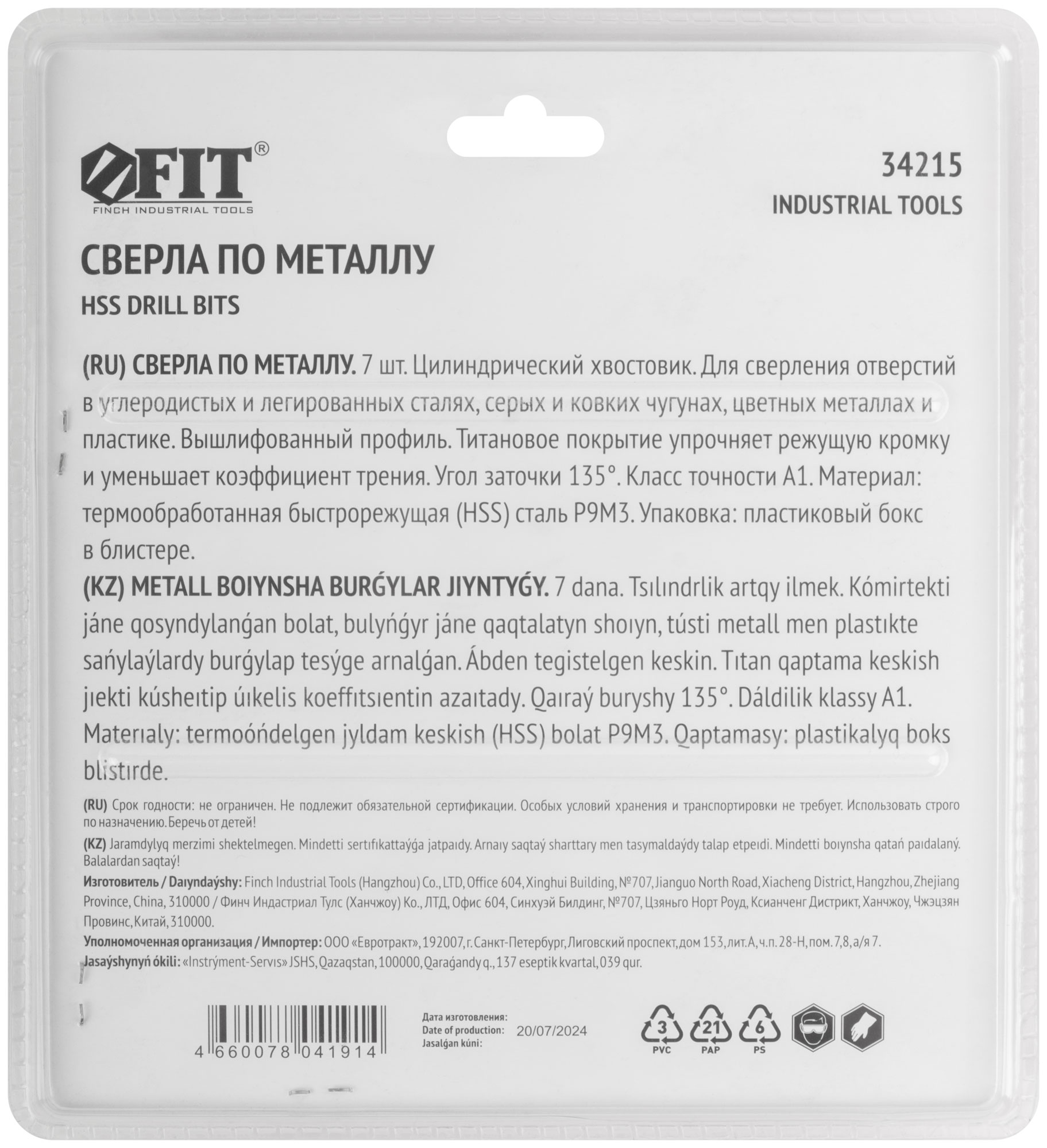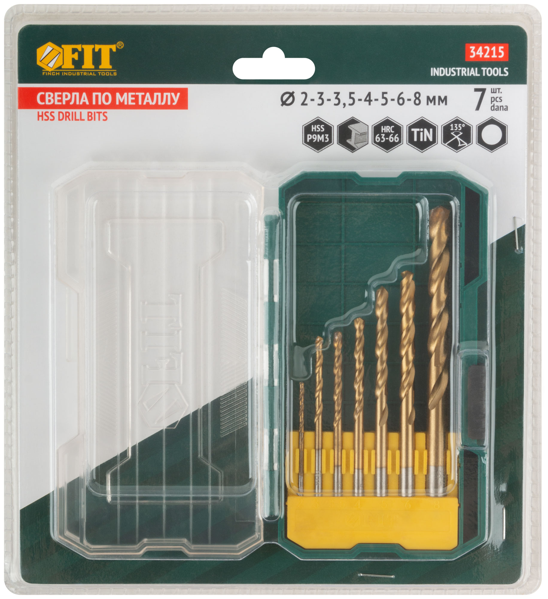 Выберите набор сверл FIT 34215, чтобы обеспечить высокую эффективность и качество работы при сверлении металлов.