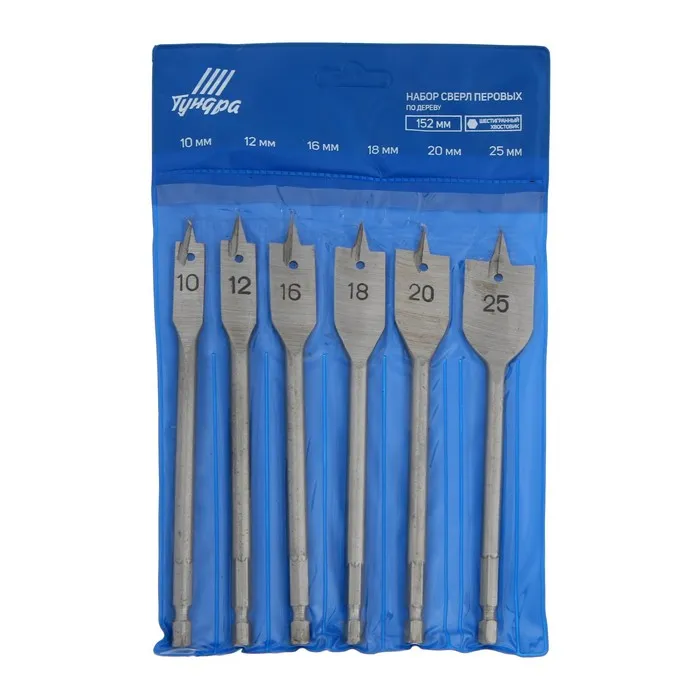 Набор сверл перовых ТУНДРА, шестигранный хвостовик, 10-12-16-18-20-25 мм, 6 шт. — Характеристики