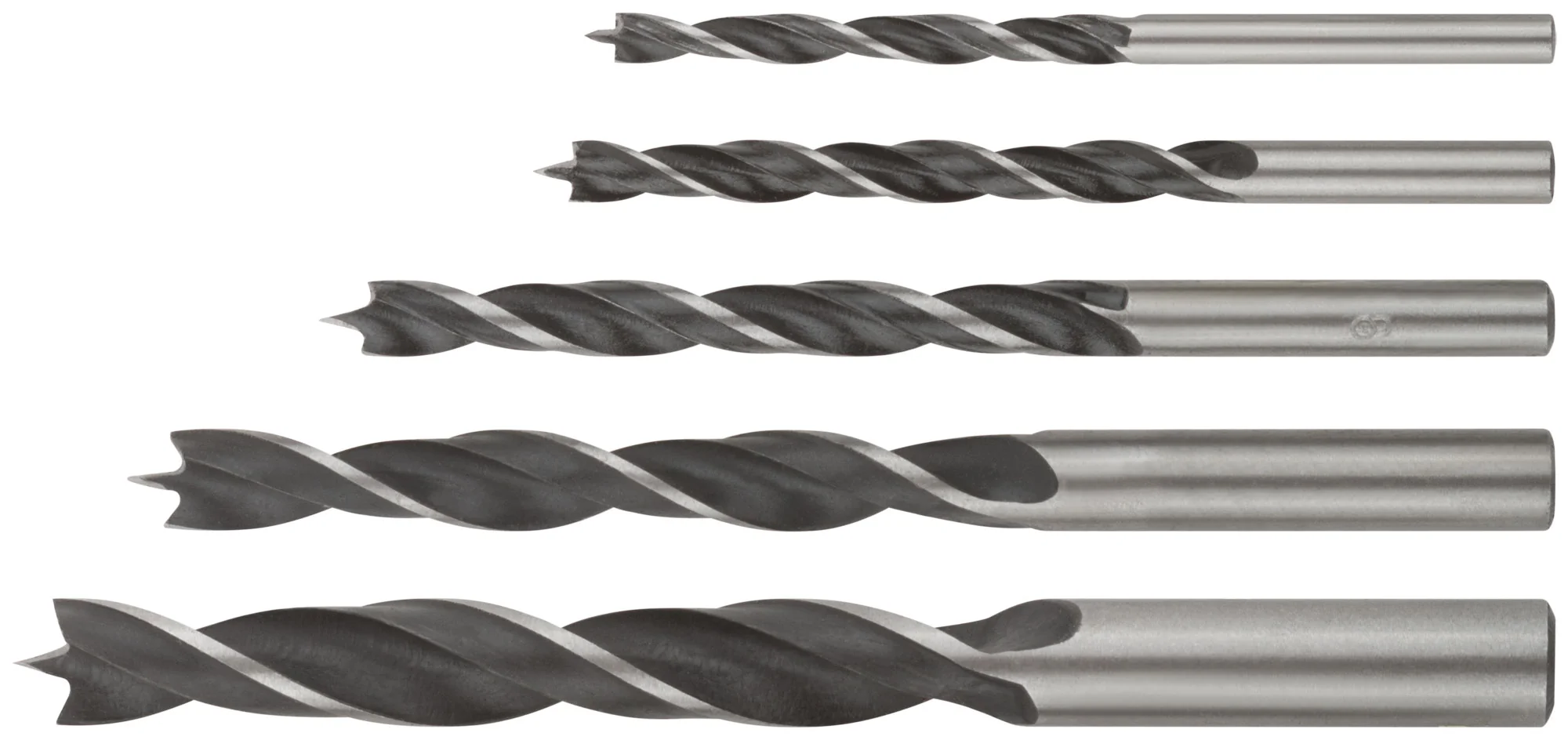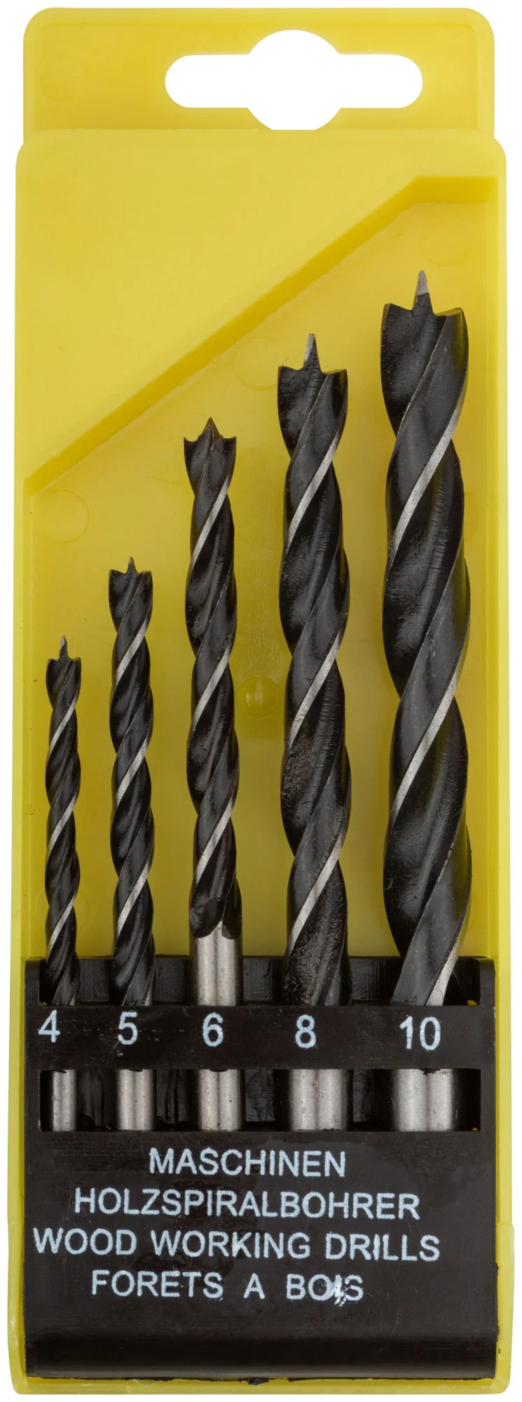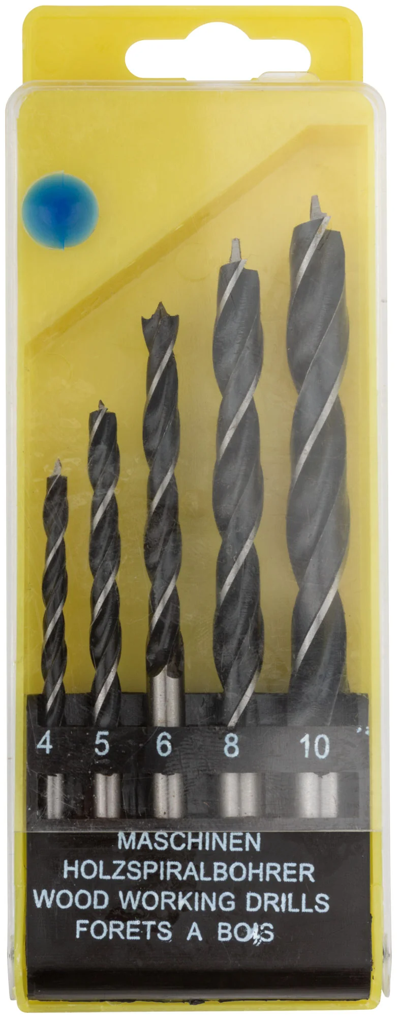 Идеальный инструмент для мастеров, которым необходимо сверлить отверстия в деревянных заготовках. Набор из пяти сверл диаметром от 4 до 10 мм позволяет выполнять широкий спектр задач, от небольших до более значительных отверстий в дереве.