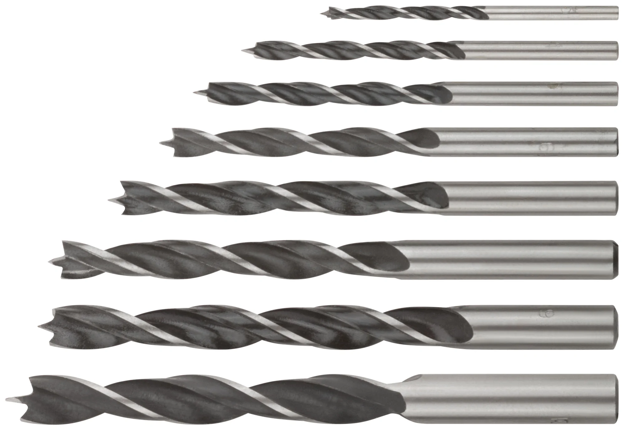 Одним из преимуществ набора является разнообразие типоразмеров, что позволяет оперативно решать задачи с разными видами древесины. Цилиндрический хвостовик обеспечивает надежное крепление в патроне, предотвращая скольжение во время работы.