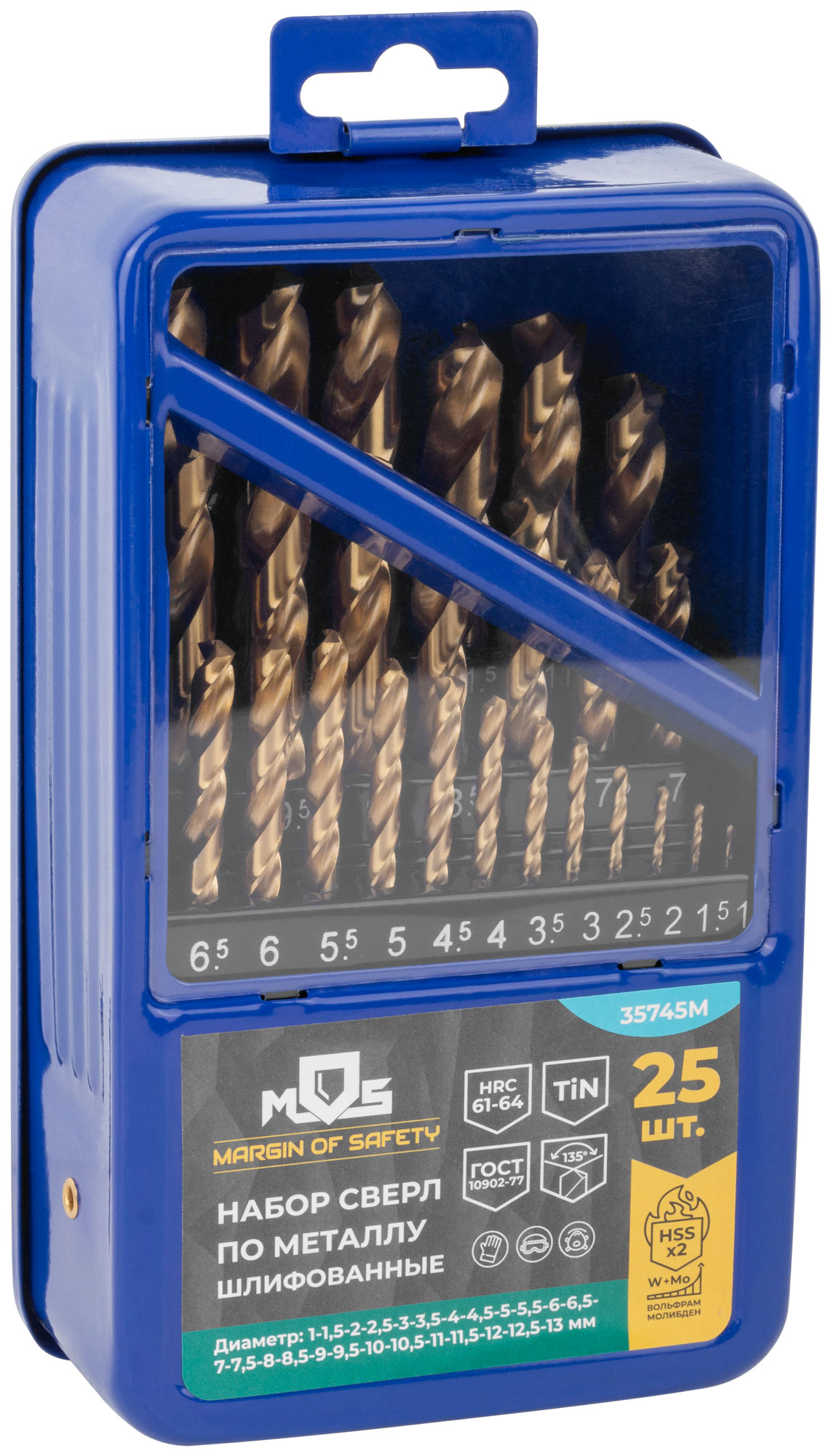 Набор шлифованных сверл HSS 1-13 мм с титановым покрытием для металла