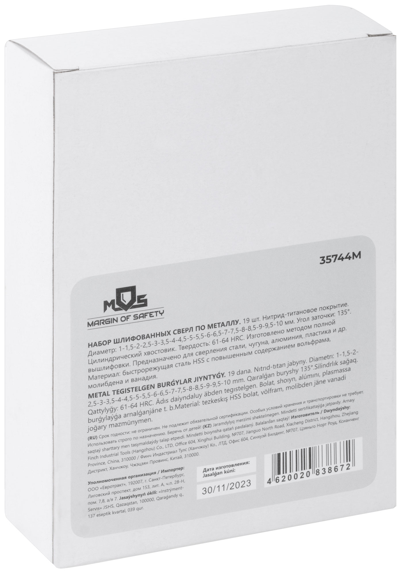 Сверла изготовлены из быстрорежущей стали с титановым покрытием, что улучшает их износостойкость и долговечность. Угол заточки в 135° обеспечивает легкое начальное сверление и предотвращает скольжение. Набор упакован в компактный металлический бокс, удобный для хранения и транспортировки.