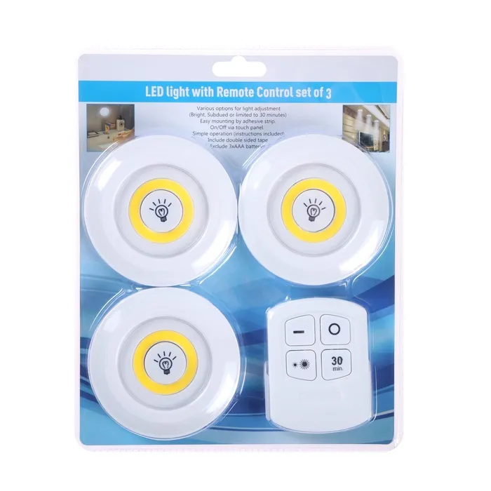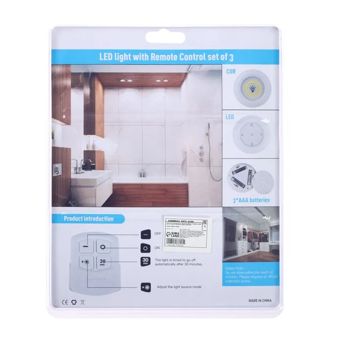 Набор светильников светодиодных, 3 штуки, нажимной, 4000К, от батареек, пульт в комплекте — Характеристики