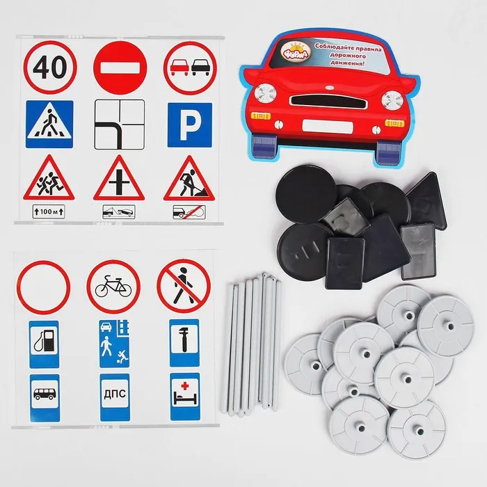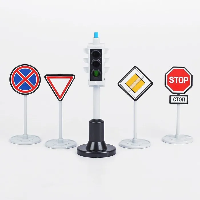 - 14 дорожных знаков: в набор входят знаки, которые точно имитируют настоящие: «Движение прямо», «Остановка» и другие. Они выполнены из прочного пластика и легко устанавливаются на любую поверхность. Идеально для создания миниатюрного города или обучения правилам дорожного движения.