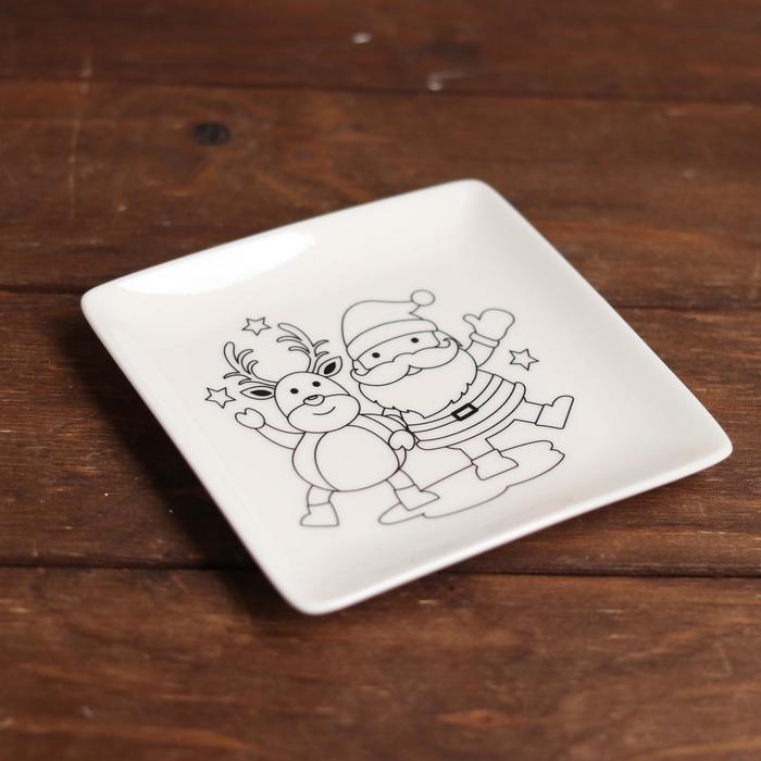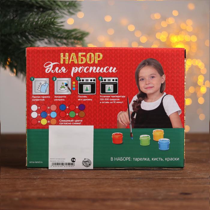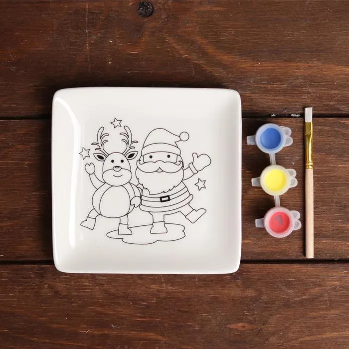 Набор тарелка под раскраску «Олень и Дед Мороз» краска 3 цв по 2 мл, кисть — Характеристики