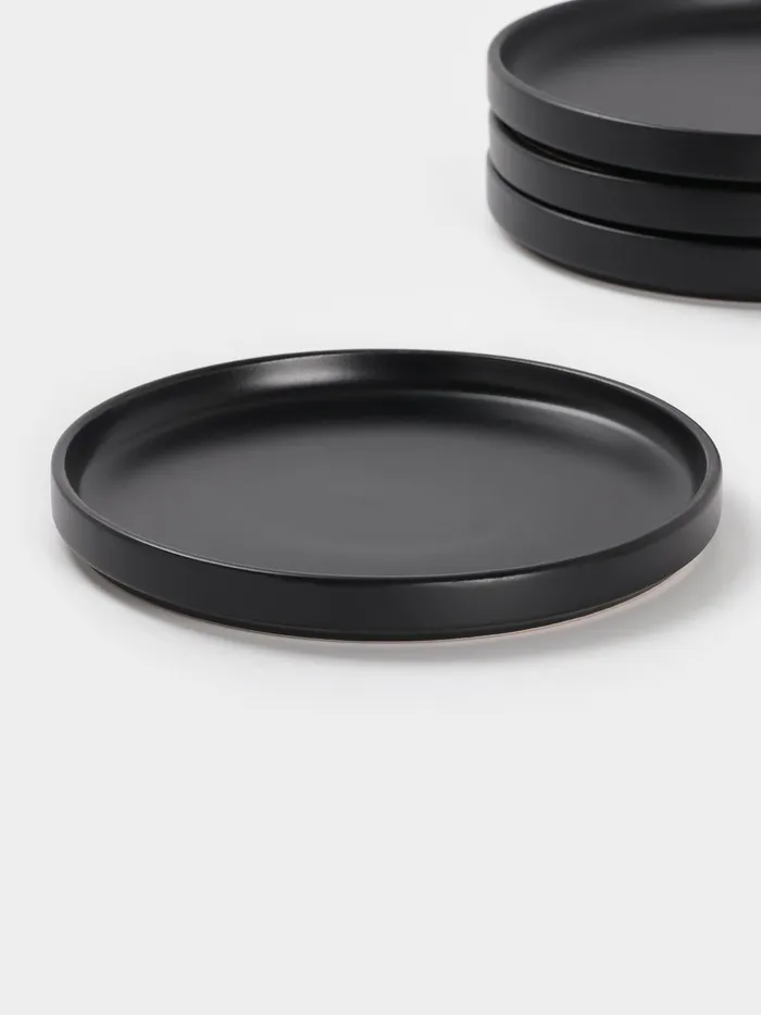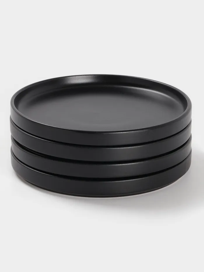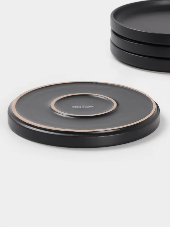 Керамический набор тарелок «Гранит» — 4 предмета с матовой поверхностью для стильной и практичной сервировки. Чёрный цвет и лаконичный дизайн делают их универсальными для повседневного и праздничного стола. Диаметр каждой — 20 см, что удобно для десертов, закусок или завтраков.