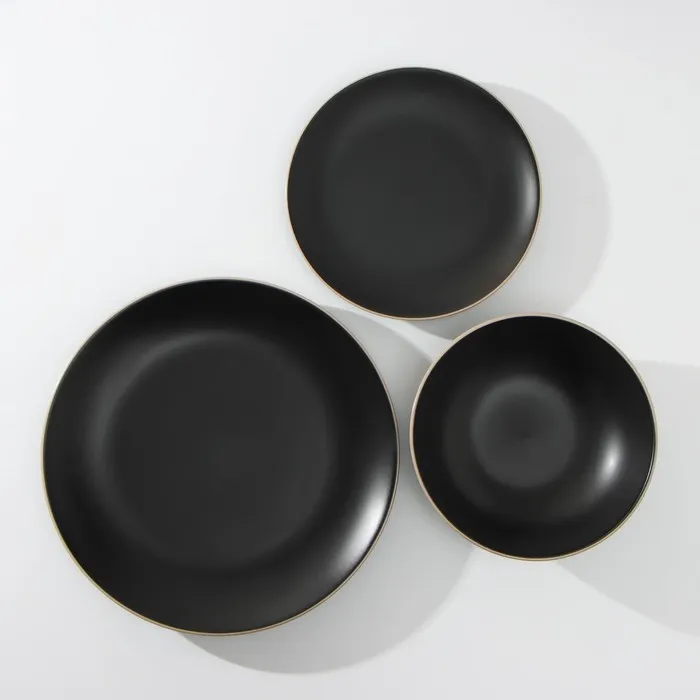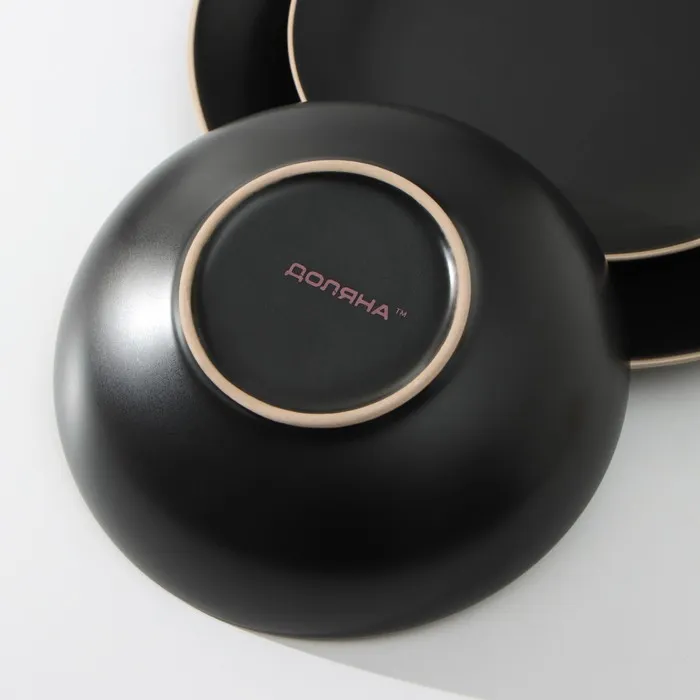 Набор тарелок Доляна «Ваниль», 18 предметов: 6 тарелок d=19 см, 6 тарелок d=27 см, 6 мисок d=19 см, керамика, чёрный — Характеристики