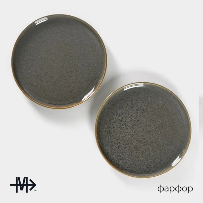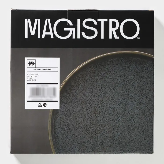 Набор тарелок фарфоровых десертных Magistro Fog, 2 предмета: d=20 см, цвет серый — Характеристики