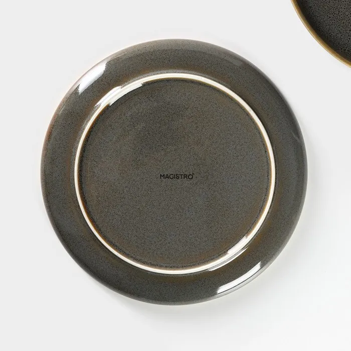 Тарелки Magistro Fog изготовлены из качественного фарфора. Насыщенный серый цвет изделий имеет коричневые и чёрные вкрапления. Тарелки подойдут для сервировки во время завтрака, обеда и ужина. Можно использовать как блюдо для подачи фруктов, десертов, закусок и многого другого. Несмотря на свой оригинальный внешний вид, тарелки рассчитаны на ежедневное использование.