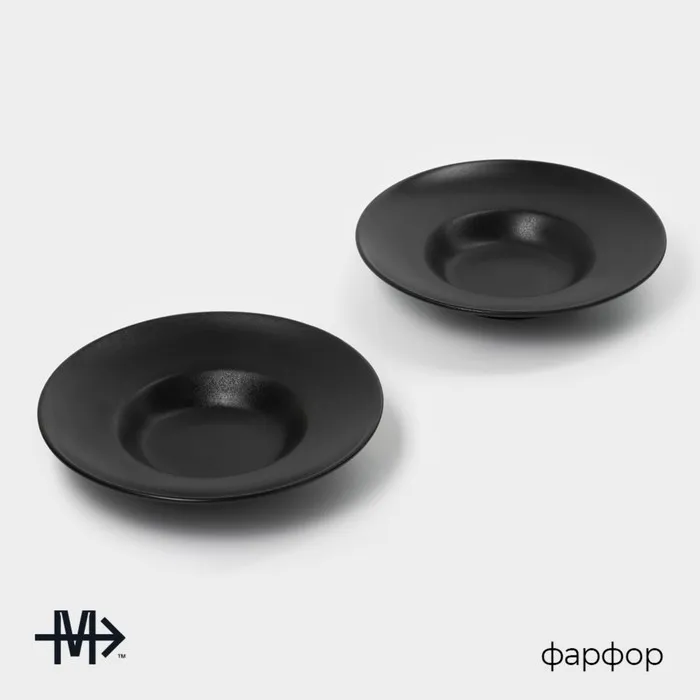 Набор тарелок фарфоровых для пасты Magistro Carbon, 21×21 см, 2 шт, цвет чёрный — Характеристики