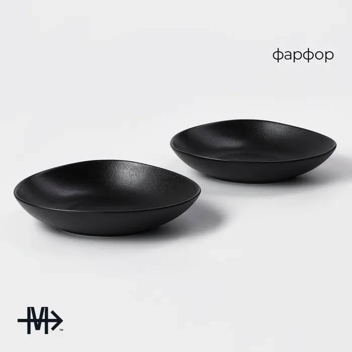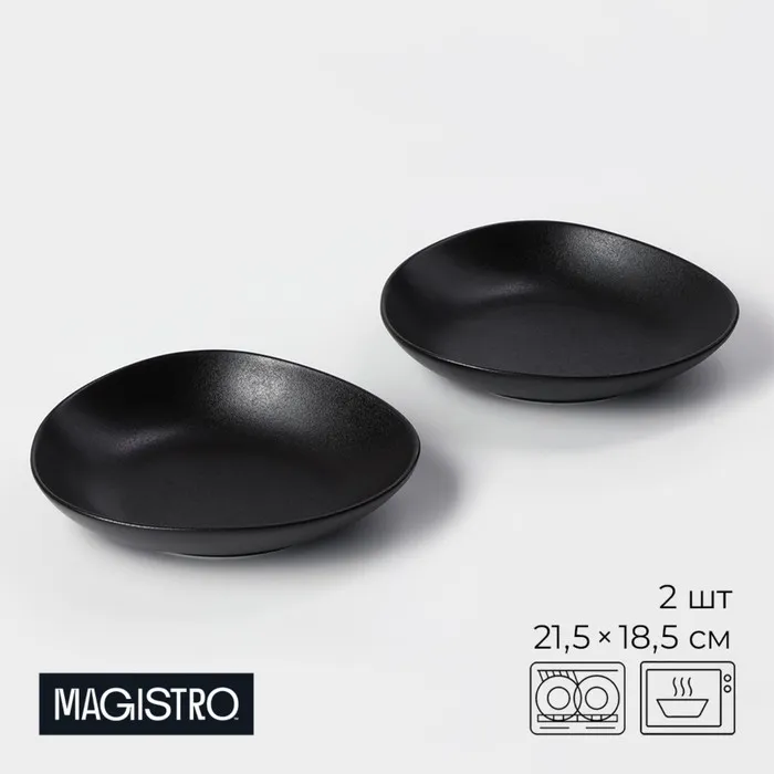 Набор тарелок фарфоровых Magistro Carbon, 21×18,5 см, 2 шт, цвет чёрный — Характеристики