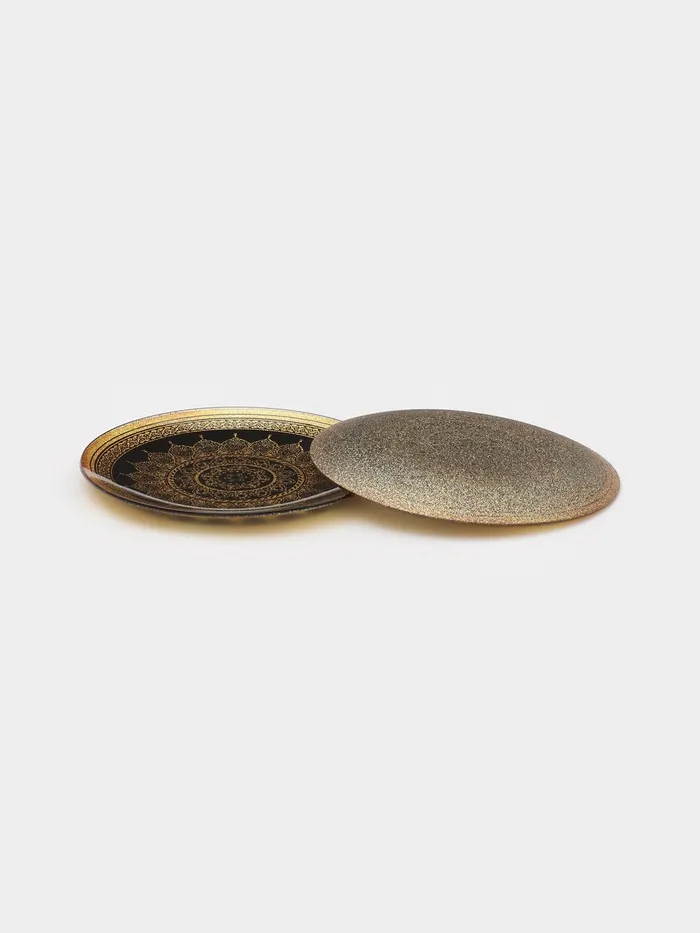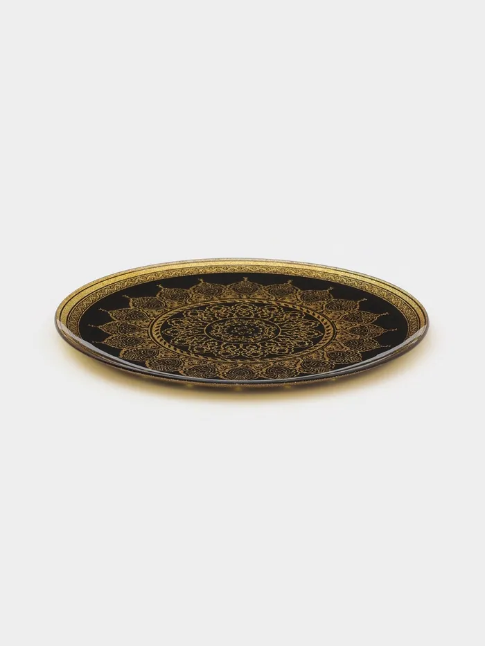 Набор тарелок «Растительный узор», 7 предметов: d=30 см - 1 шт., d=18 см - 6 шт., чёрный, золотистый — Характеристики