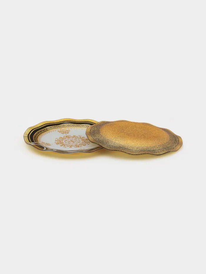 Набор тарелок «Растительный узор», 7 предметов: d=30 см - 1 шт., d=18 см - 6 шт., стекло, золотистый — Характеристики
