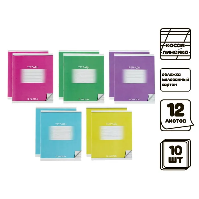 Набор тетрадей 12 листов в косую линейку, Calligratа «Школьная», обложка мелованный картон, МИКС, 10 шт. — Характеристики