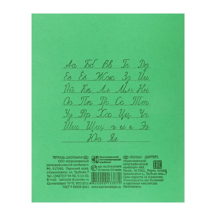 Набор тетрадей 12 листов в косую линейку «Зелёная обложка», белизна 92%, белые листы, 20 шт. — Характеристики
