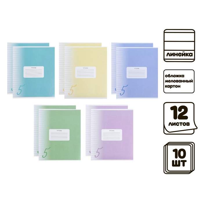 Набор тетрадей 12 листов в линейку, Calligrata «Пятёрка», обложка мелованный картон, 10 шт. — Характеристики