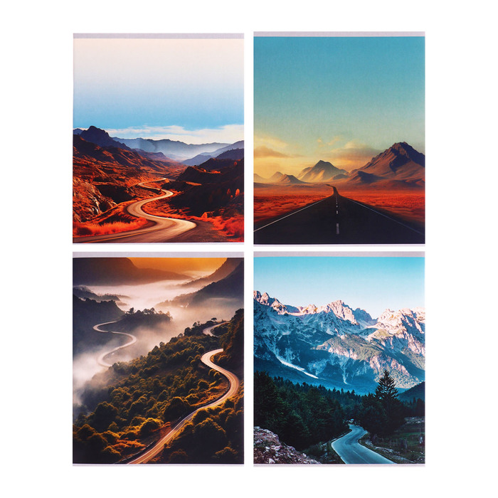 Тетрадь 96 листов в клетку Calligrata «Дорога в горах», обложка мелованный картон, матовая ламинация, выборочный УФ-лак, блок офсет МИКС