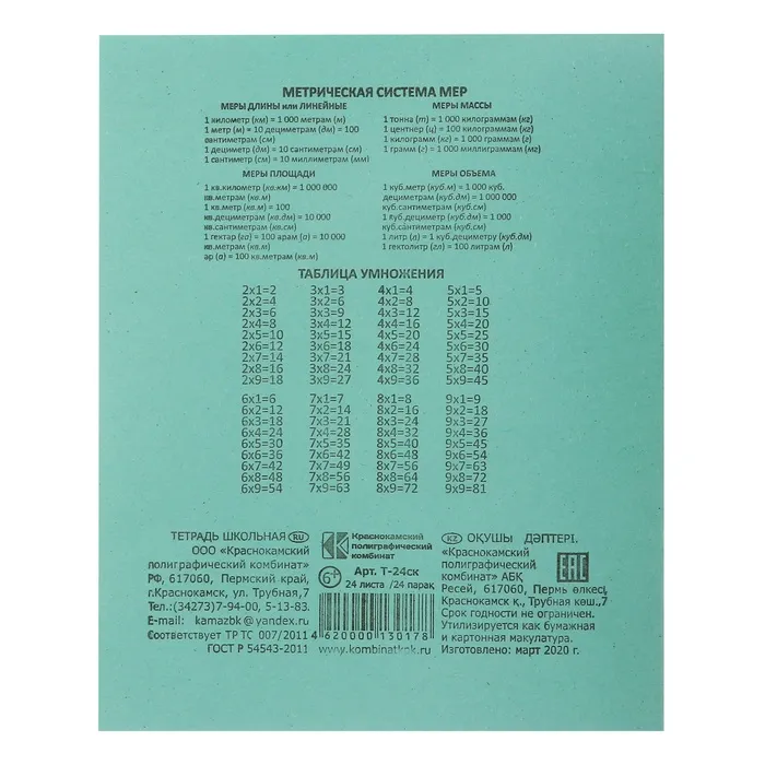 Набор тетрадей 20 штук, 24 листа в клетку КПК «Зелёная обложка», серые листы — Характеристики