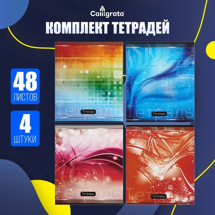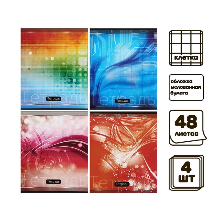 Набор тетрадей 48 листов в клетку Calligrata «Абстракция», обложка мелованная бумага, серые листы, 4 шт. — Характеристики