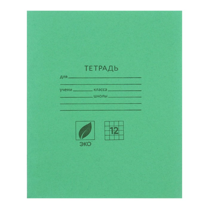 Тетрадь 12 листов в клетку «Зелёная обложка», плотность 60 г/м², белизна 92%