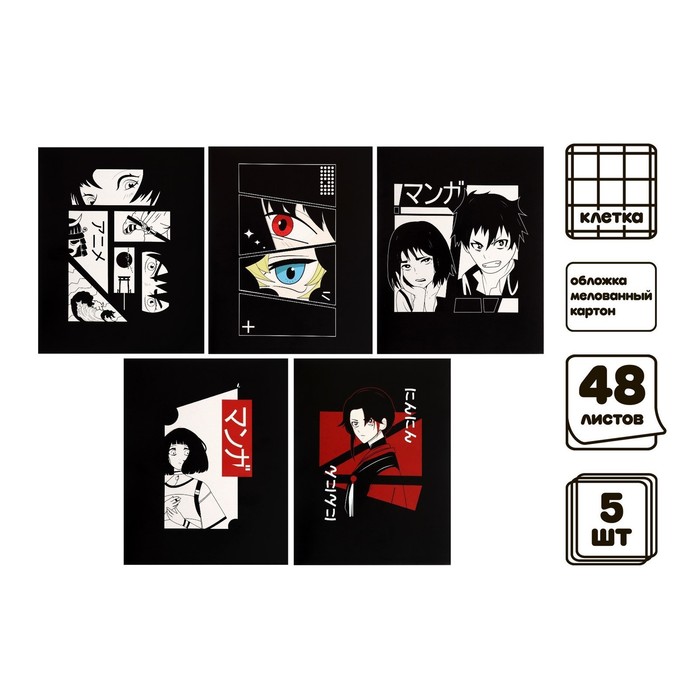 Набор тетрадей 48 листов в клетку Calligrata «Аниме», обложка мелованный картон, 5 шт. — Характеристики
