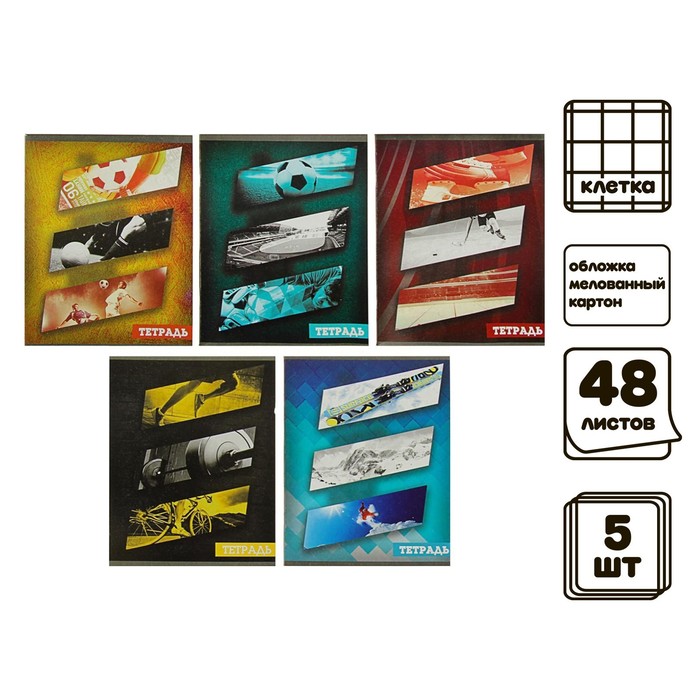 Комплект тетрaдей из 5 штук, 48 листов в клетку,