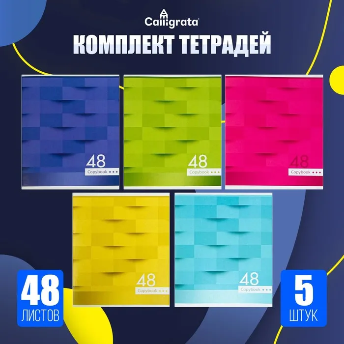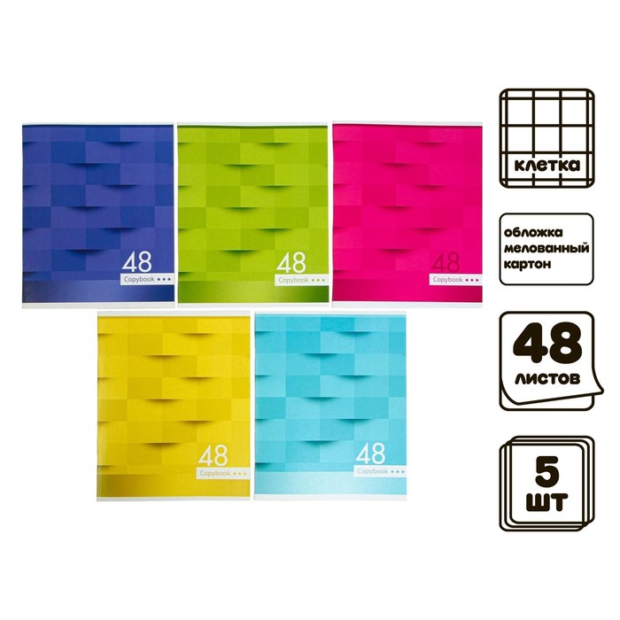 Набор тетрадей 48 листов в клетку, Calligrata «Мозаика», серые листы, 5 шт. — Характеристики