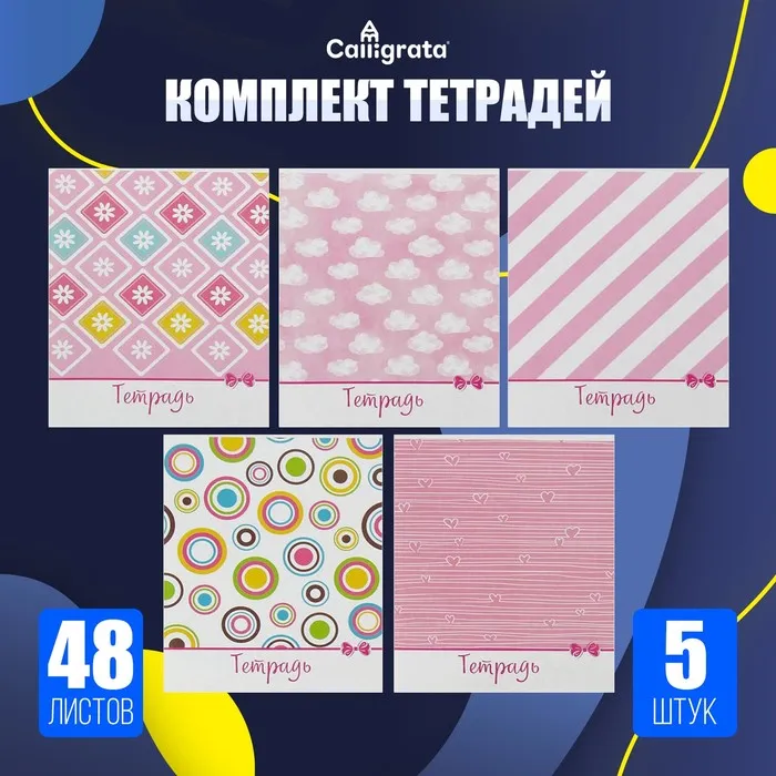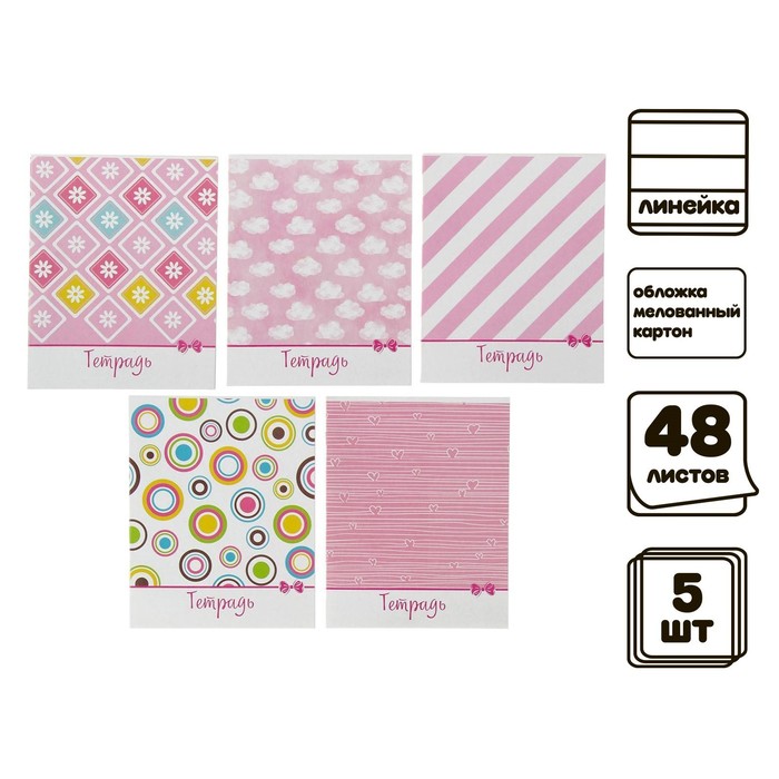 Набор тетрадей, 48 листов в линейку, Calligrata «Узоры», 5 штук — Характеристики