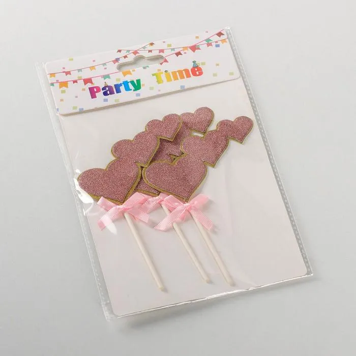Набор топперов для торта «Сердечки», 3 шт, 20×13 см, цвет розовый — Характеристики