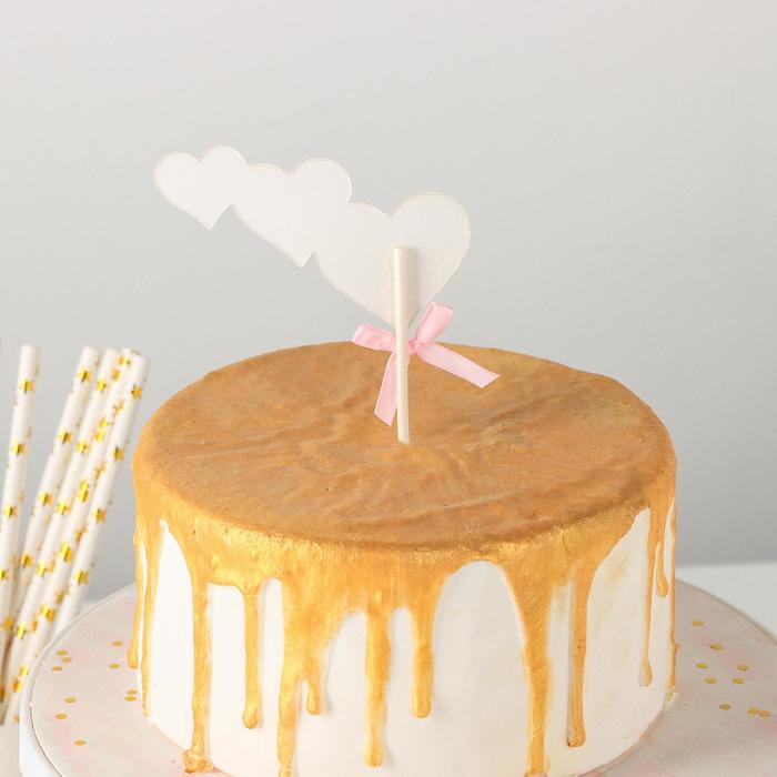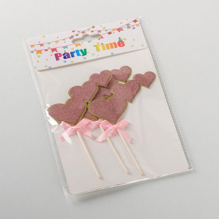 Набор топперов для торта «Сердечки», 3 шт, 20×13 см, цвет розовый
