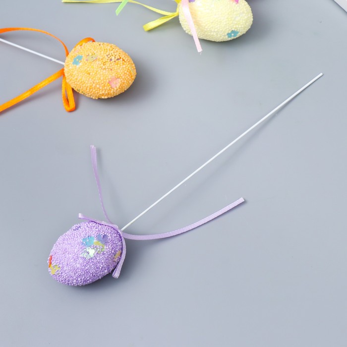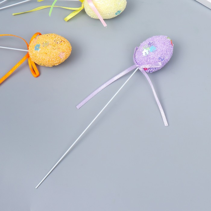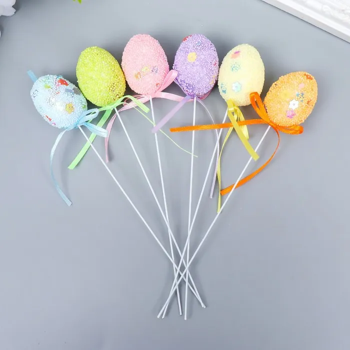 Набор топперов для украшения «Яйцо посыпка цветы», 6 шт., яйцо 3×4 см; 19×3×3 см поможет вам воссоздать легкий и весенний образ. Возможно, это будет славная композиция с готовыми персонажами вроде миленьких заек или цыпляток либо необычная праздничная открытка из множества бутафорских разноцветных яиц.