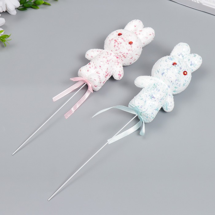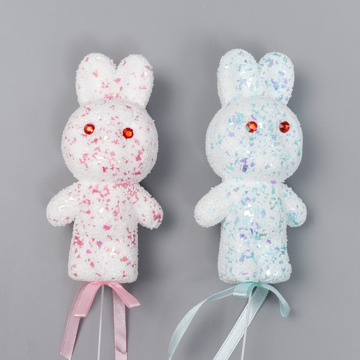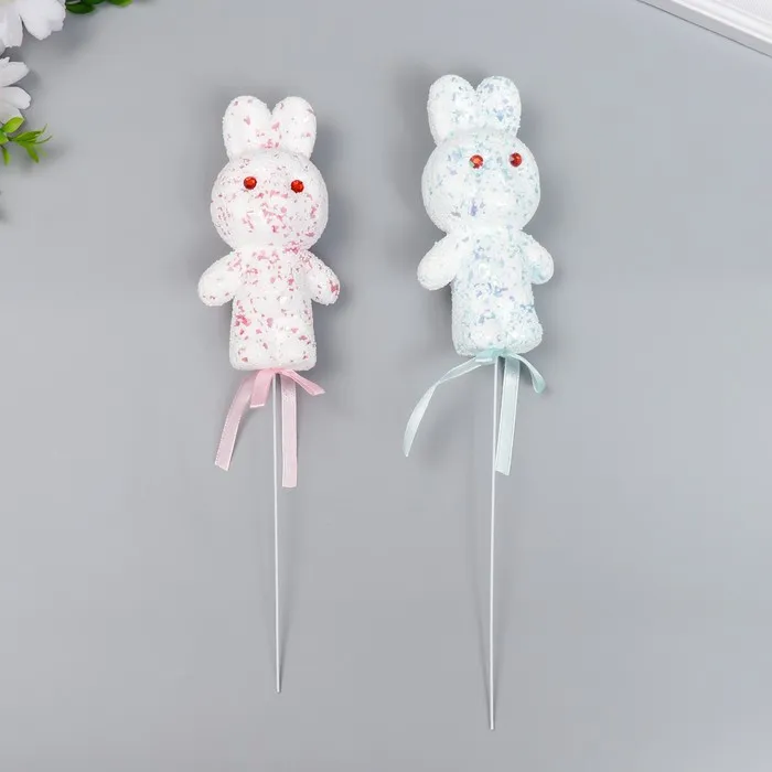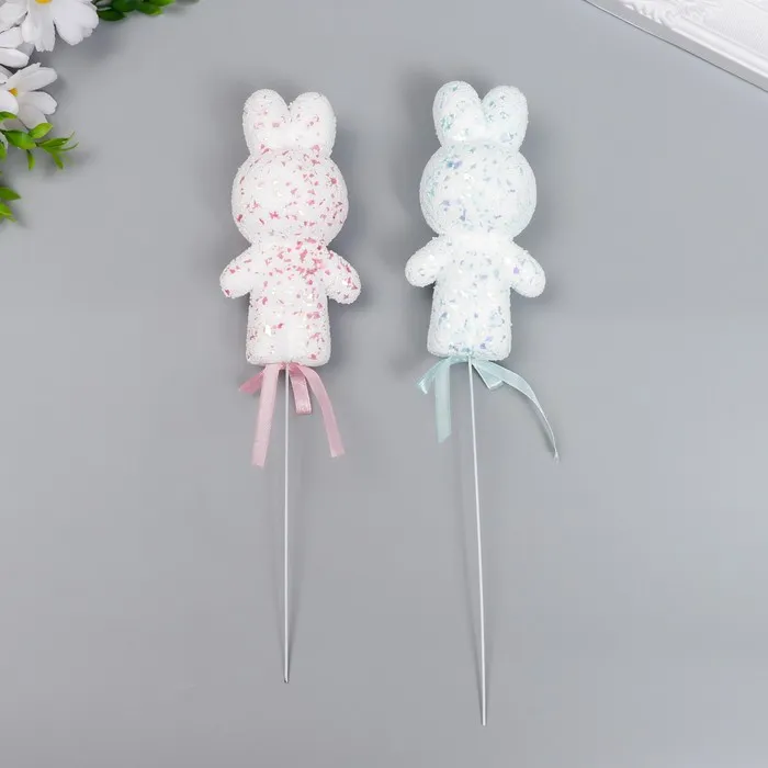 Набор топперов для украшения «Зайчата: посыпка, блеск», 2 шт., розовый, голубой, 12 см