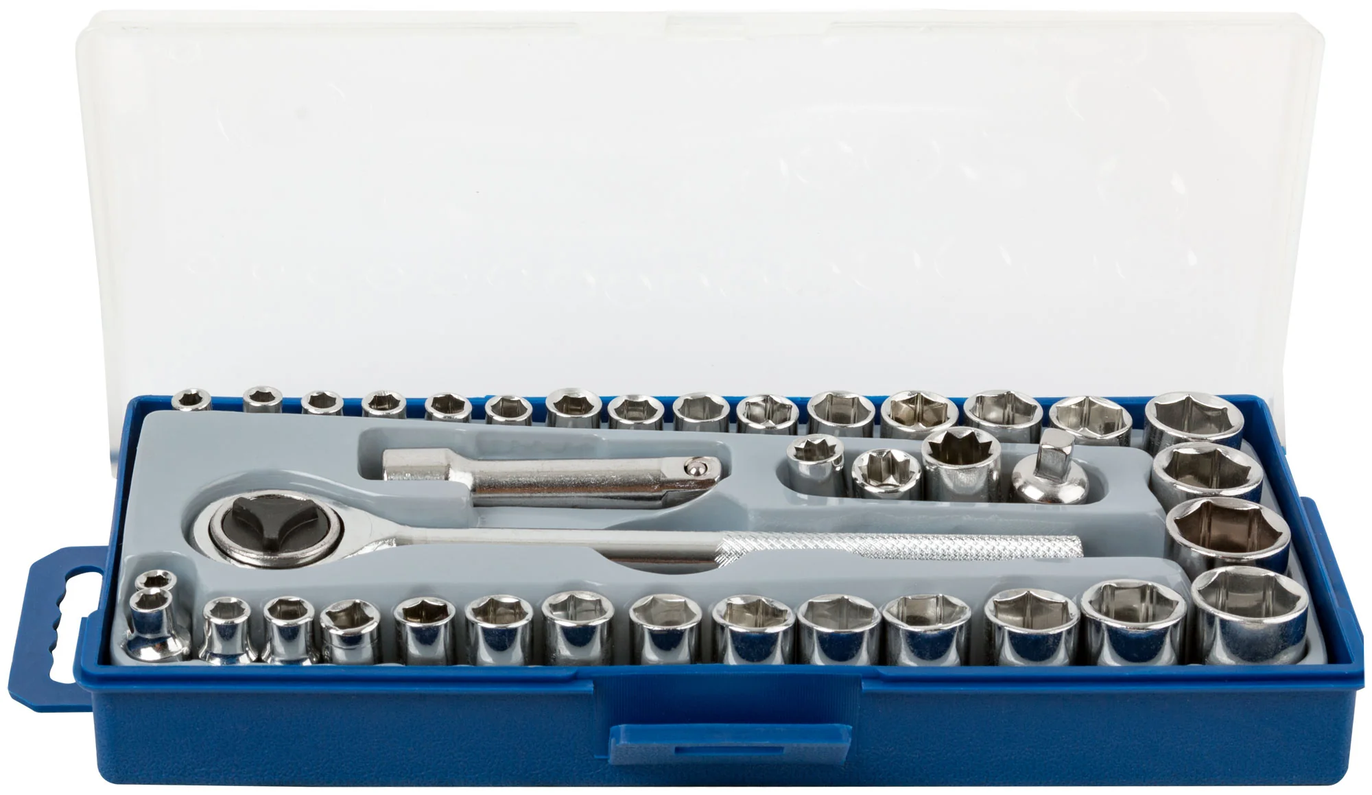 Набор включает головки различных размеров и типов, позволяя работать с широким диапазоном крепежных деталей. Основной материал изготовления — инструментальная сталь, что гарантирует долговечность и надежность каждого элемента. Упакован в прочный пластиковый футляр, набор легко транспортируется и хранится.