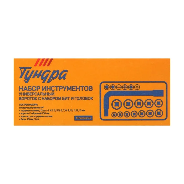 Набор торцевых головок и бит ТУНДРА, вороток, 19 предметов — Характеристики