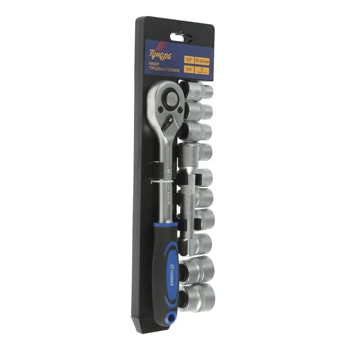 Набор торцевых головок ТУНДРА, трещотка, CrV, 1/2", 10 - 24 мм, 12 предметов — Характеристики
