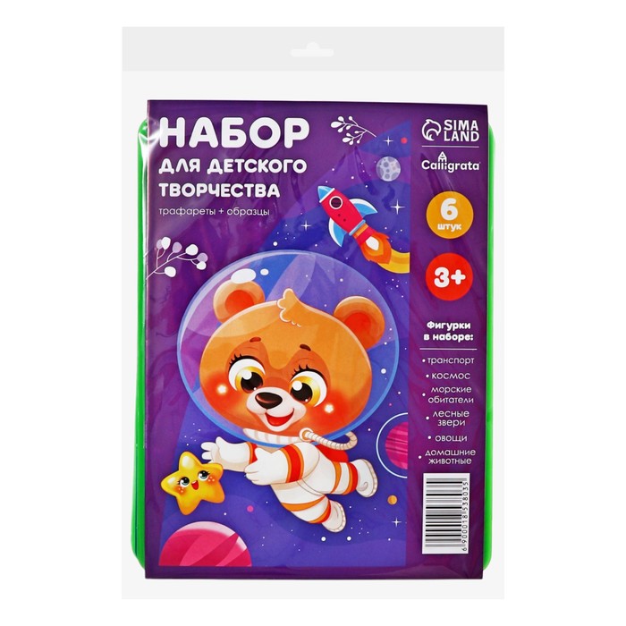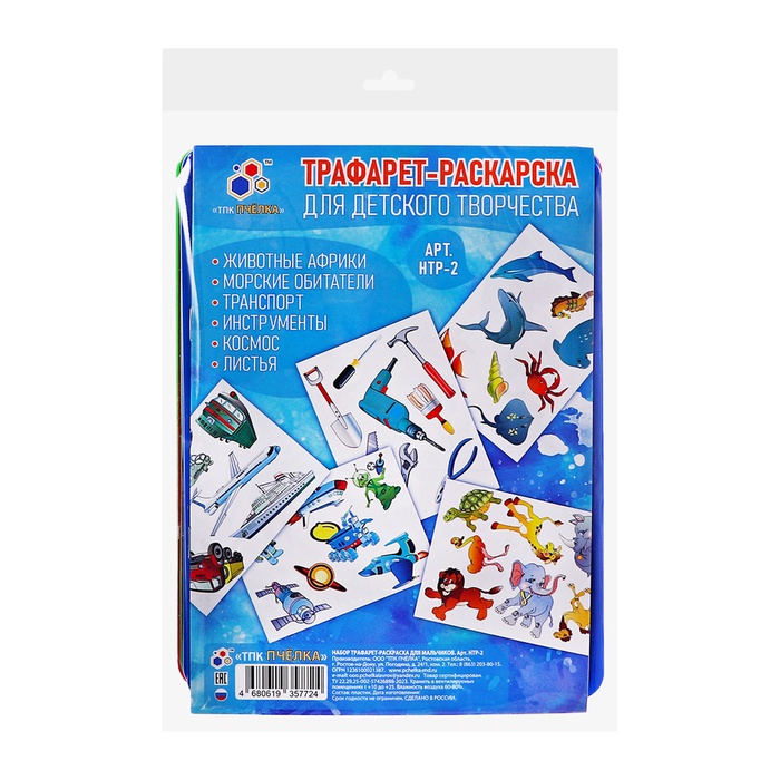 Набор трафарет - раскраска Calligrata, 6 шт.: транспорт, инструменты, космос, морские обитатели, животные Африки, листья, для мальчиков — Характеристики