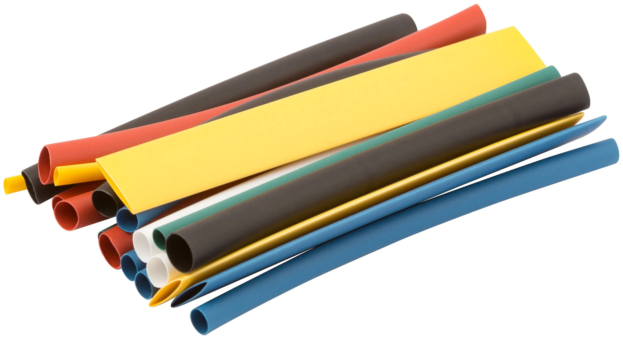 Трубки изготовлены из полиолефина, что обеспечивает высокую устойчивость к температурным перепадам и долговечность использования. В наборе представлены разноцветные трубки длиной 100 мм и коэффицентом усадки 2:1, что позволяет легко подобрать нужный диаметр.