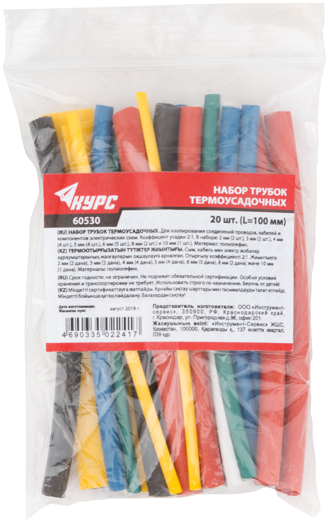 Набор термоусадочных трубок 100 мм, 20 шт., КУРС для изоляции