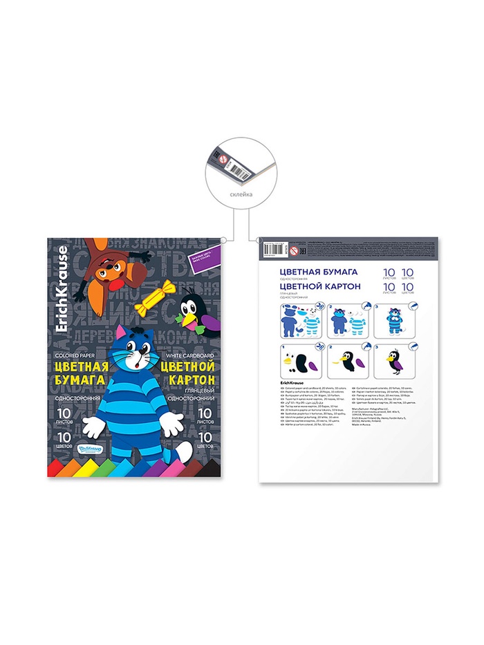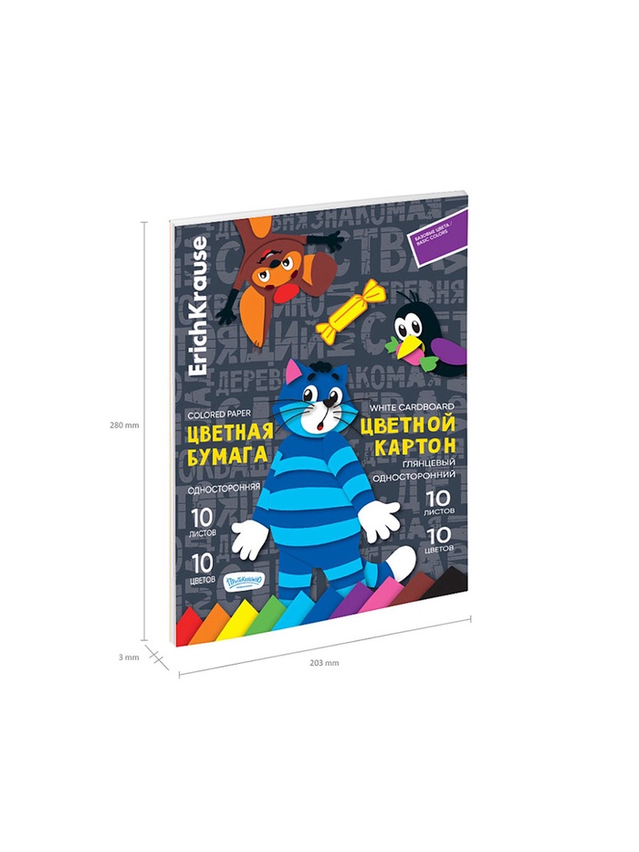 Набор цветного картона и цветной бумаги ErichKrause «Простоквашино», А4, 20 листов, 10 цветов, на склейке, односторонние, с инструкцией подделок — Характеристики