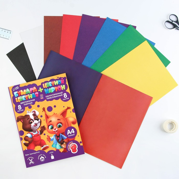 Набор, цветной картон 8 л.,8 цв., цветная бумага 8 л., 8 цв., «Для отличной учёбы» — Характеристики