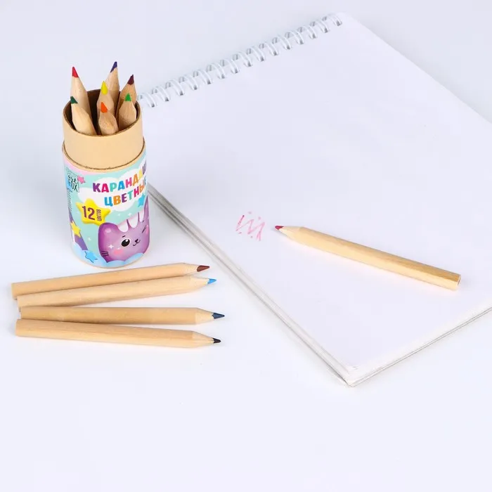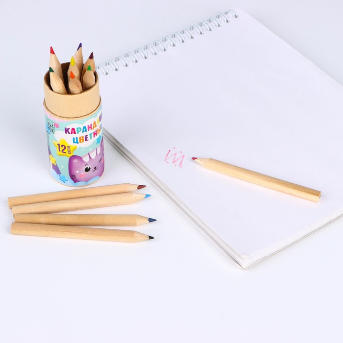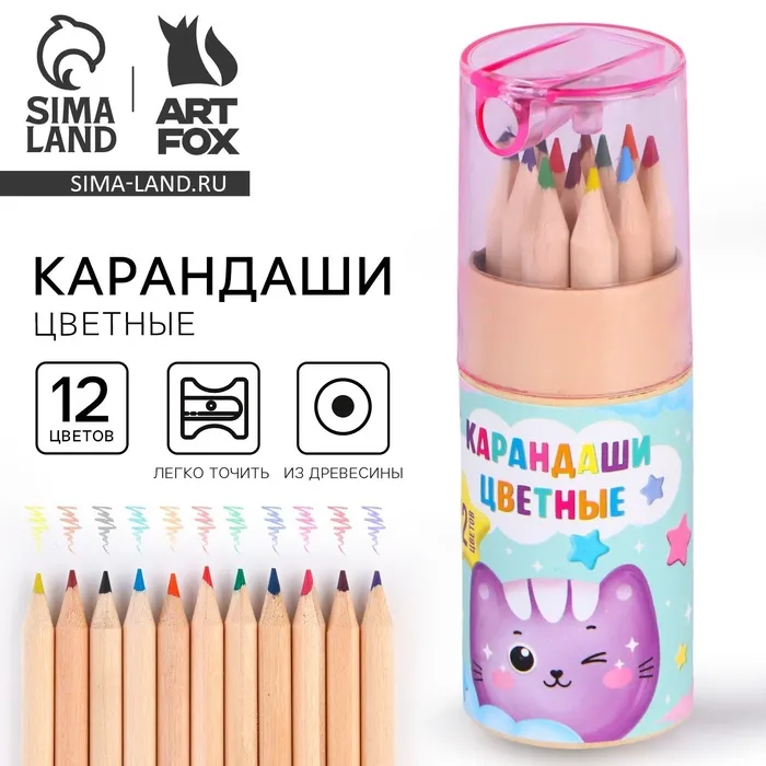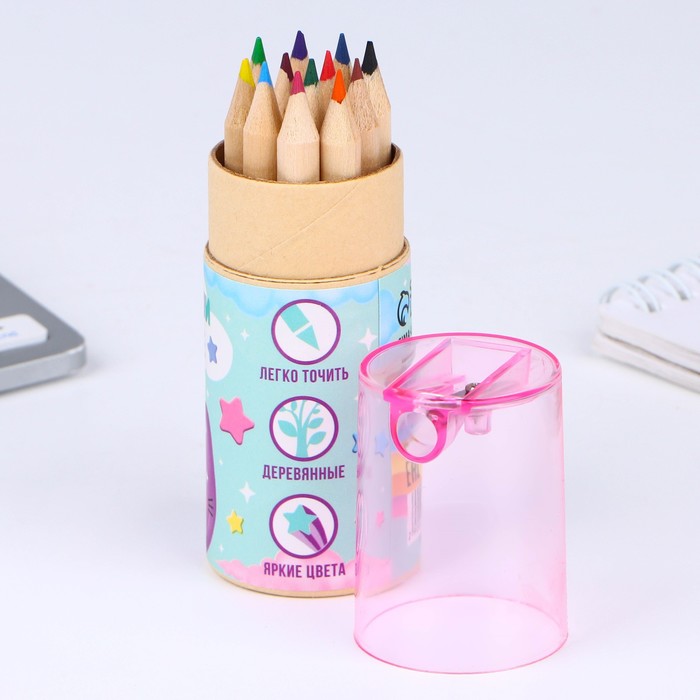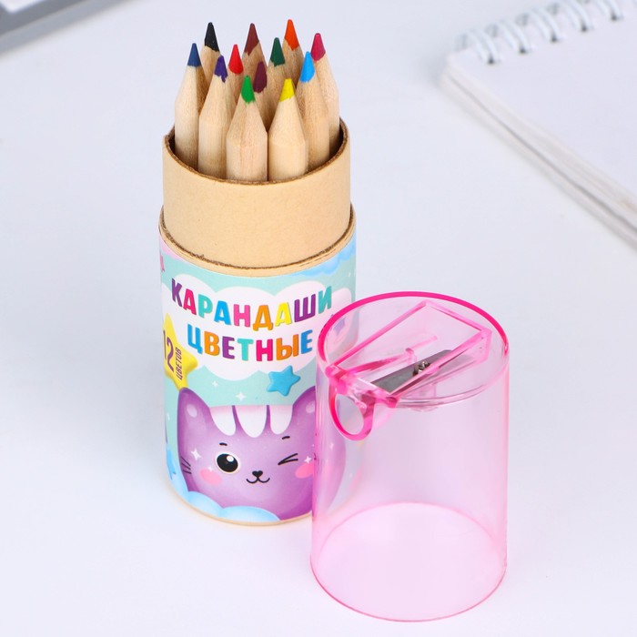 Набор цветных карандашей мини в тубусе «Котик», 12 шт, с точилкой — Характеристики