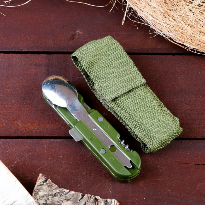 Набор туриста "Лесник" 5в1 в чехле: штопор, открывалка, нож, ложка, вилка — Характеристики