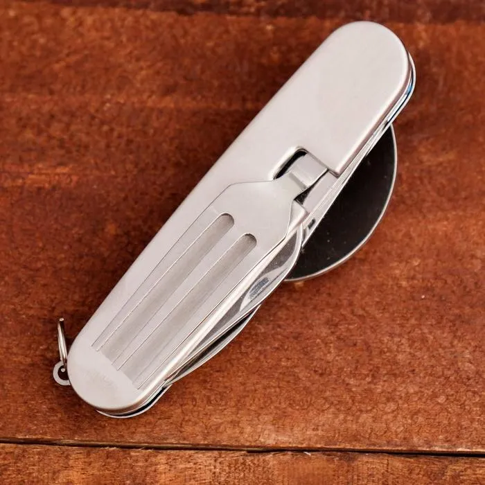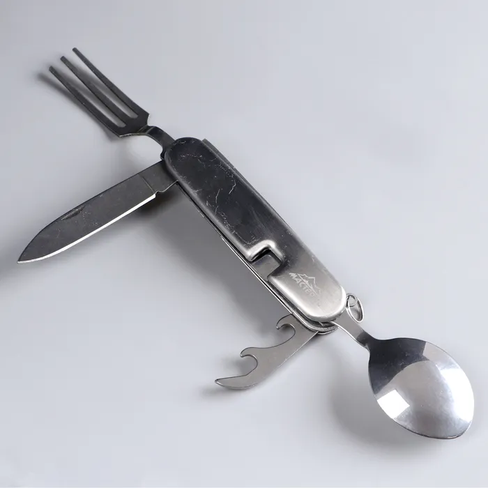 Набор туриста "Путешественник" 4в1: серебристый неотъемлемая часть любого пикника. Универсальный нож позволит нам с легкостью нарезать фрукты и овощи, открыть банку, бутылочку вина или лимонада, съесть шашлык или любимый десерт. Компактный нож сэкономит в рюкзаке место для более крупных вещей при этом останется востребованным на протяжении всего времени.