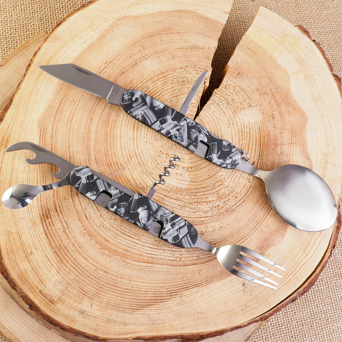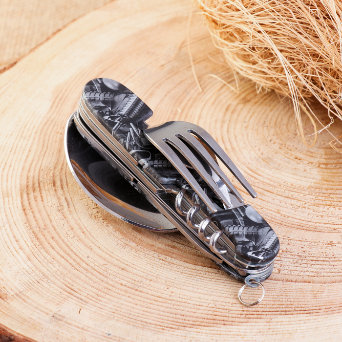 Набор туриста 5в1: нож, ложка, вилка, открывалка, пилка