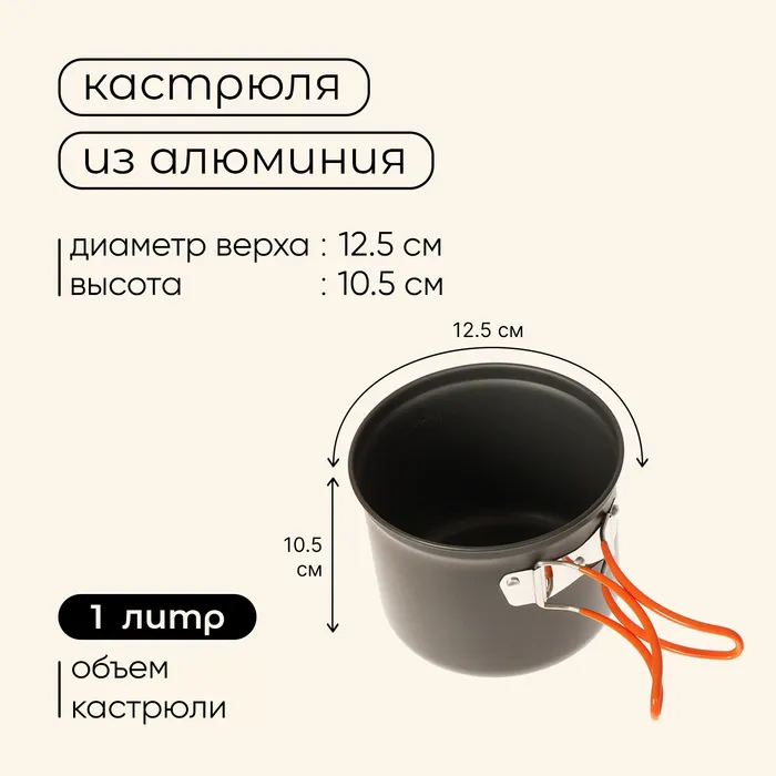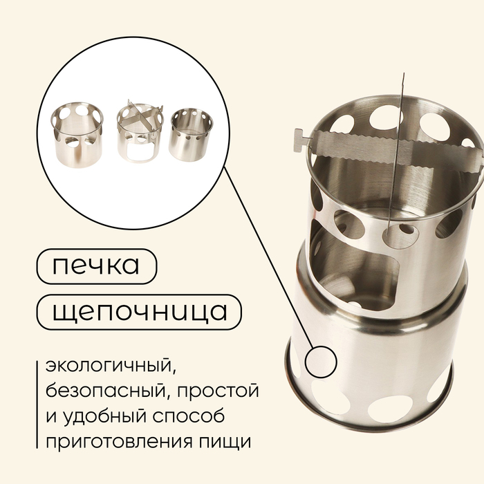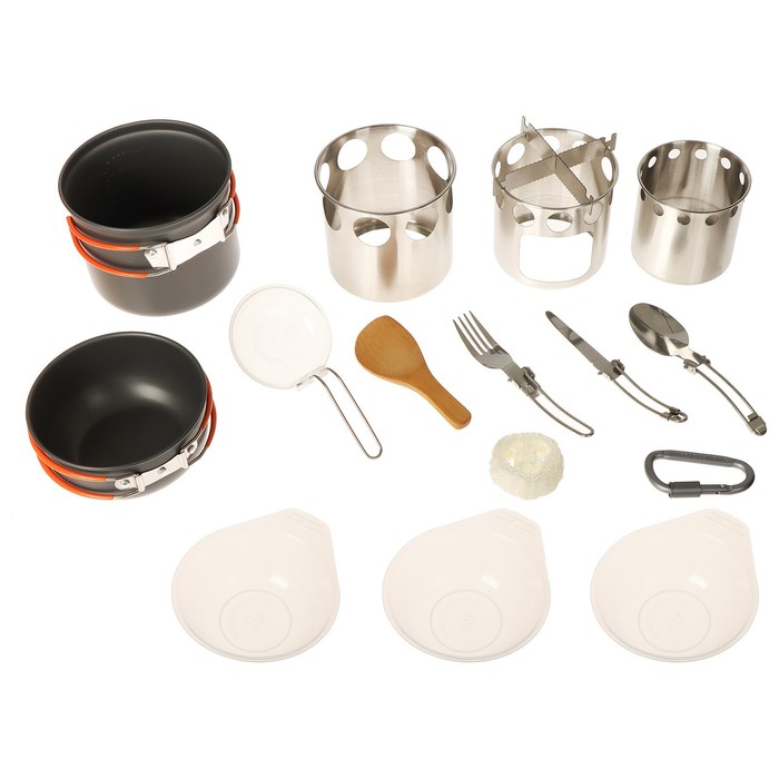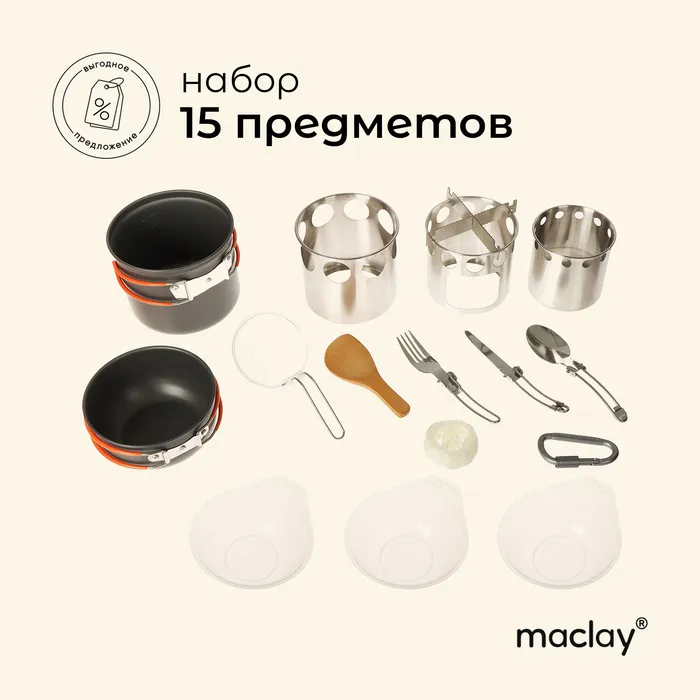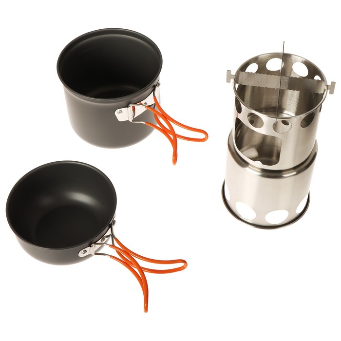 Набор туристической посуды maclay: 2 кастрюли, приборы, печка-щепочница, карабин, 3 миски — Характеристики