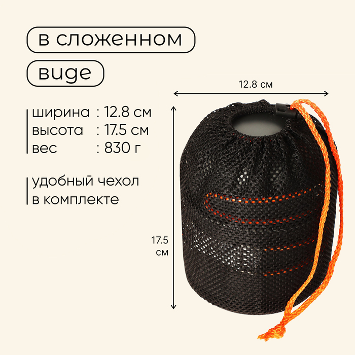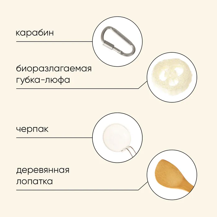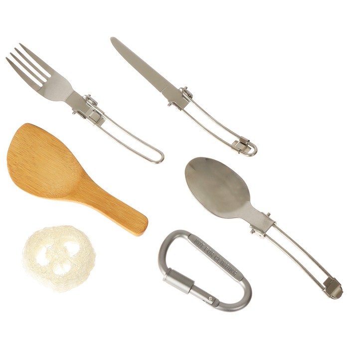 Набор отлично подходит для походов, благодаря компактным размерам. Все приборы складываются в аккуратный комплект и помещаются в сетку-переноску.