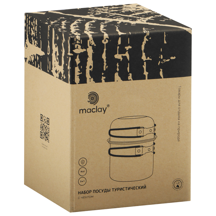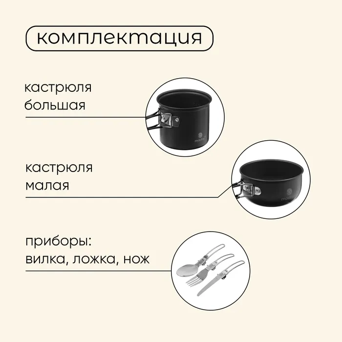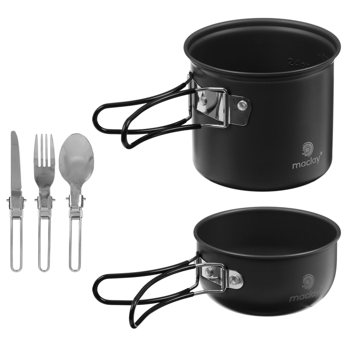 Набор туристической посуды maclay: 2 кастрюли, вилка, ложка, нож — Характеристики